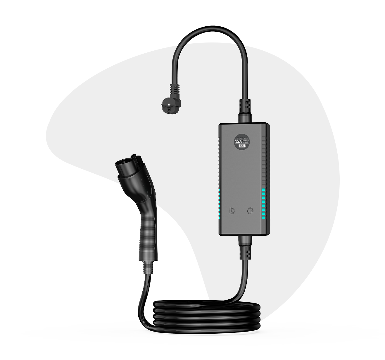 整体外观集成工业化设计元素,采用经典黑灰深色系作为主体颜色,展示出产品硬朗和个性的一面,整体尺寸小巧便于携带,同时严选用料,高精注塑,一体成型。有2.8kW/3.6kW/7kW/多种功率可选,支持共享充电、预约充电等功能选择。